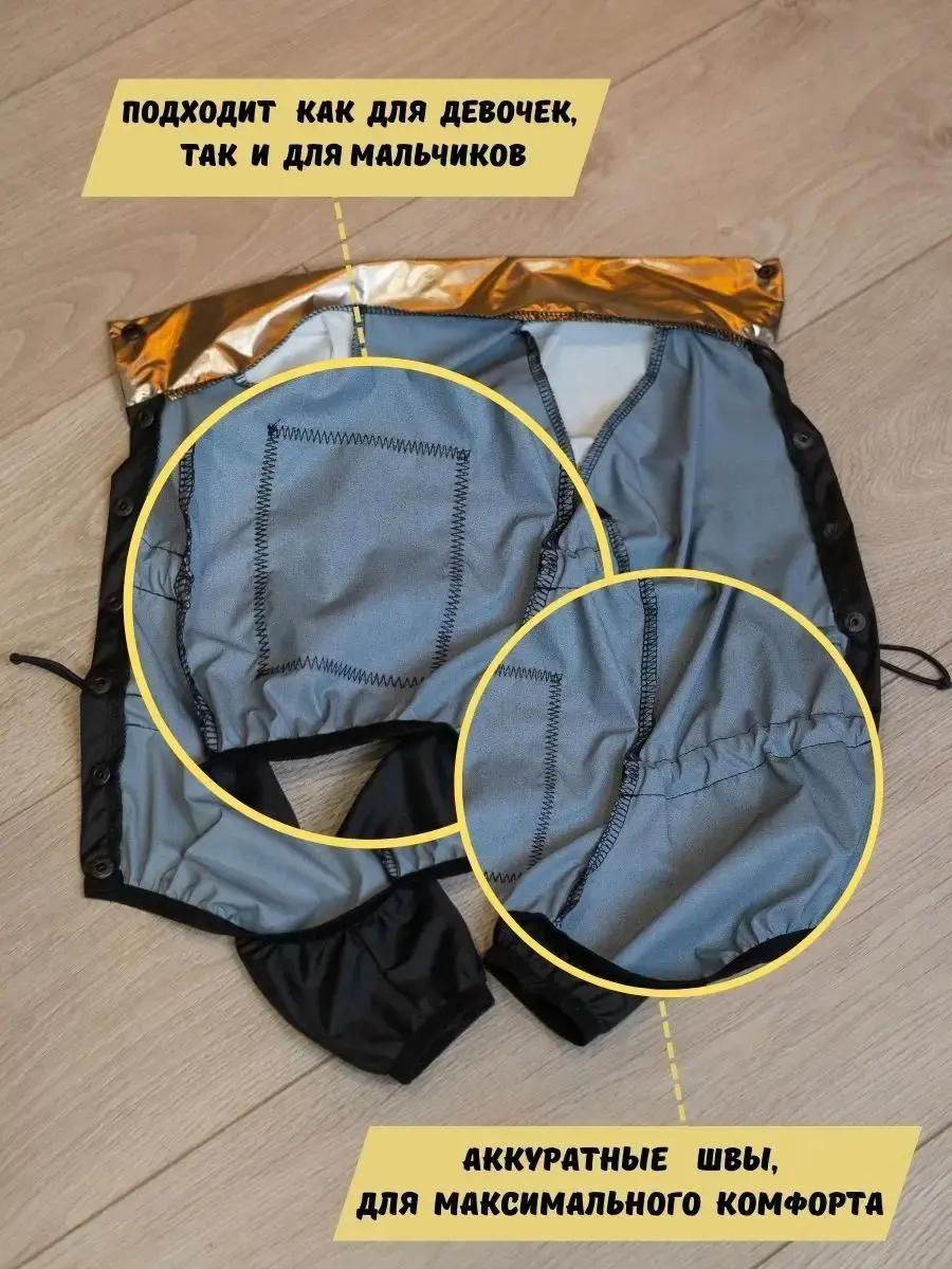 Ваш четвероногий друг достоин лучшего ухода, и наш комбинезон-дождевик для собак — идеальный выбор в дождливую погоду. Этот комбинезон обеспечит максимальный комфорт и защиту от влаги, оставив вашу собаку сухой и чистой. Верхняя одежда для собак имеет застёжки на кнопках,что позволяет легко и удобно одевать и снимать плащ дождевик и утяжки на животе и комфортные манжеты на лапках. Высокий воротник защитит шею от ветра и промокания, минимизирует риск заболевания собаки. Незаменимое решение для активных прогулок в любую погоду! Данная модель унисекс, подходит как мальчикам, так и девочкам. Если у вас мальчик, то вам необходимо самостоятельно вырезать отверстие на животе по намеченной отстрочке. Плащ для собаки легкий, невесомый.