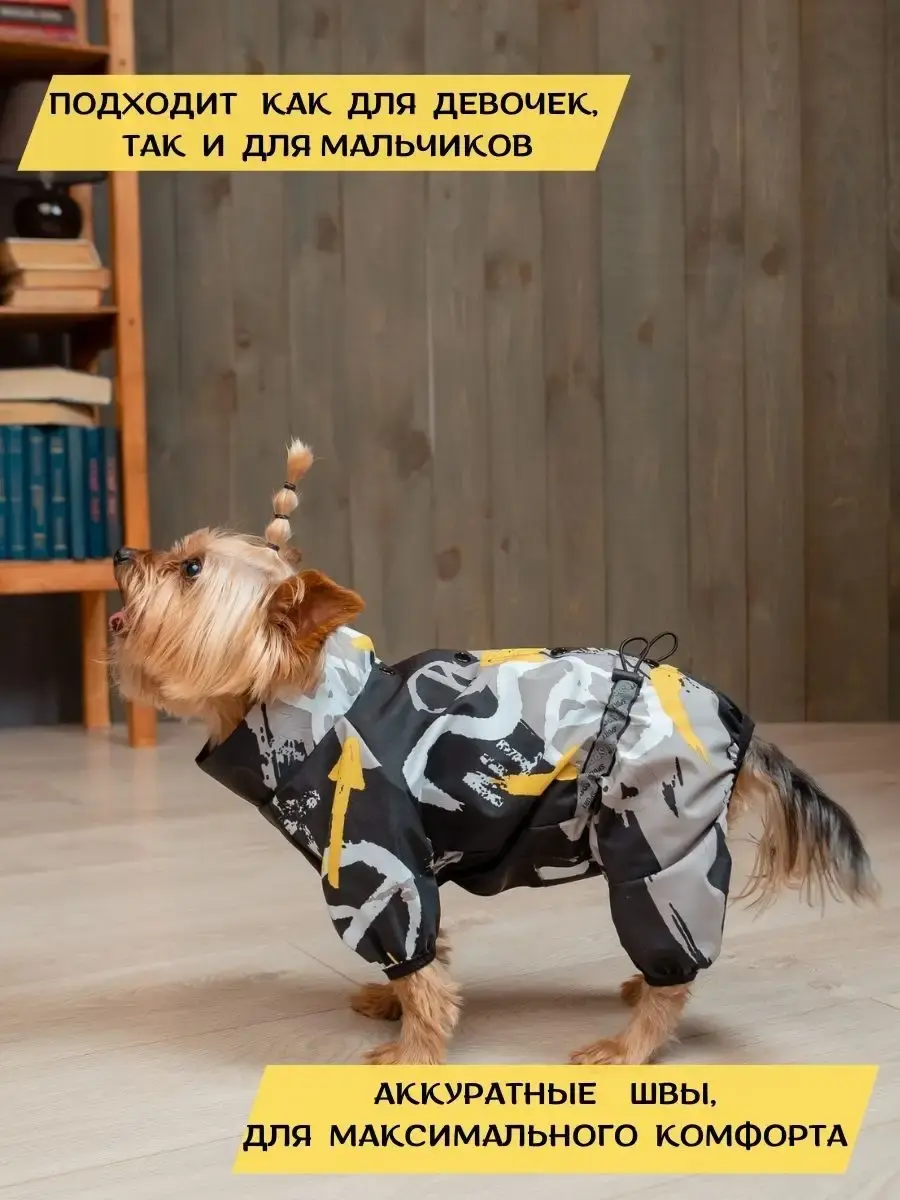 Ваш четвероногий друг достоин лучшего ухода, и наш комбинезон-дождевик для собак — идеальный выбор в дождливую погоду. Этот комбинезон обеспечит максимальный комфорт и защиту от влаги, оставив вашу собаку сухой и чистой. Верхняя одежда для собак имеет застёжки на кнопках,что позволяет легко и удобно одевать и снимать плащ дождевик и утяжки на животе и комфортные манжеты на лапках. Высокий воротник защитит шею от ветра и промокания, минимизирует риск заболевания собаки. Незаменимое решение для активных прогулок в любую погоду! Данная модель унисекс, подходит как мальчикам, так и девочкам. Если у вас мальчик, то вам необходимо самостоятельно вырезать отверстие на животе по намеченной отстрочке. Плащ для собаки легкий, невесомый.