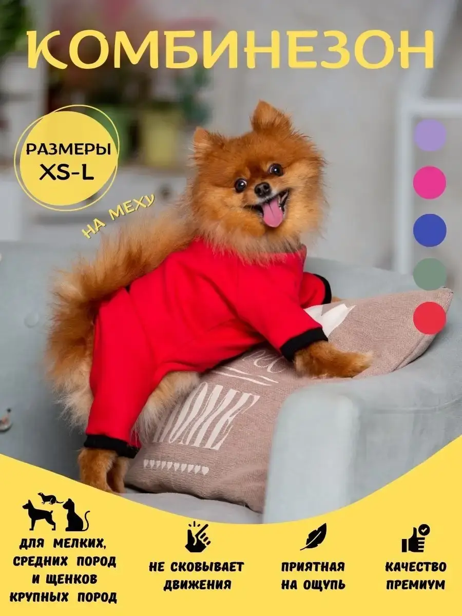 Плюшевый комбинезон для собак из ткани c начесом - трикотаж на меху с начесом, манжеты из кашкорсе. Вещи для животных на любое время года - лето/ летний, весна, осень, зима/зимний. Одежда для собак мелких пород, средних, щенков крупных пород, товары для кошек, котов, для грызунов хорьков. Костюм не стесняет и не сковывает движения при ходьбе, играх, беге. Комбез унисекс надевается через голову и отлично сидит на зверюшки. Наряд отшивается вручную на собственном производстве и проходит контроль качества на каждом этапе. Модели разработаны экспериментальным путем и опробованы на своих питомцах. Ваш питомец будет стилен, моден и не останется без внимания. Породы - йоркширский терьер/ йорк, той терьер, шпиц, французский бульдог, корги, такса, чихуахуа, сфинкс.