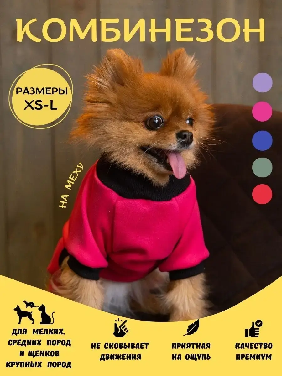 Плюшевый комбинезон для собак из ткани c начесом - трикотаж на меху с начесом, манжеты из кашкорсе. Вещи для животных на любое время года - лето/ летний, весна, осень, зима/зимний. Одежда для собак мелких пород, средних, щенков крупных пород, товары для кошек, котов, для грызунов хорьков. Костюм не стесняет и не сковывает движения при ходьбе, играх, беге. Комбез унисекс надевается через голову и отлично сидит на зверюшки. Наряд отшивается вручную на собственном производстве и проходит контроль качества на каждом этапе. Модели разработаны экспериментальным путем и опробованы на своих питомцах. Ваш питомец будет стилен, моден и не останется без внимания. Породы - йоркширский терьер/ йорк, той терьер, шпиц, французский бульдог, корги, такса, чихуахуа, сфинкс.