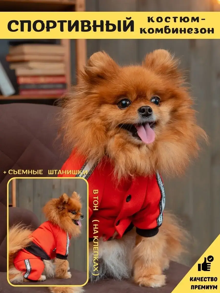 Спортивный комбинезон для ваших стильных питомцев, который состоит из кофточки и штанишек на клепках. Комбинезон - костюм отлично подойдет для мелких и средних пород. В этом костюме будет удобно играть и бегать. Кофточка легко надевается и застегивается кнопками, по желанию ее можно носить отдельно,отстегнув штанишки.